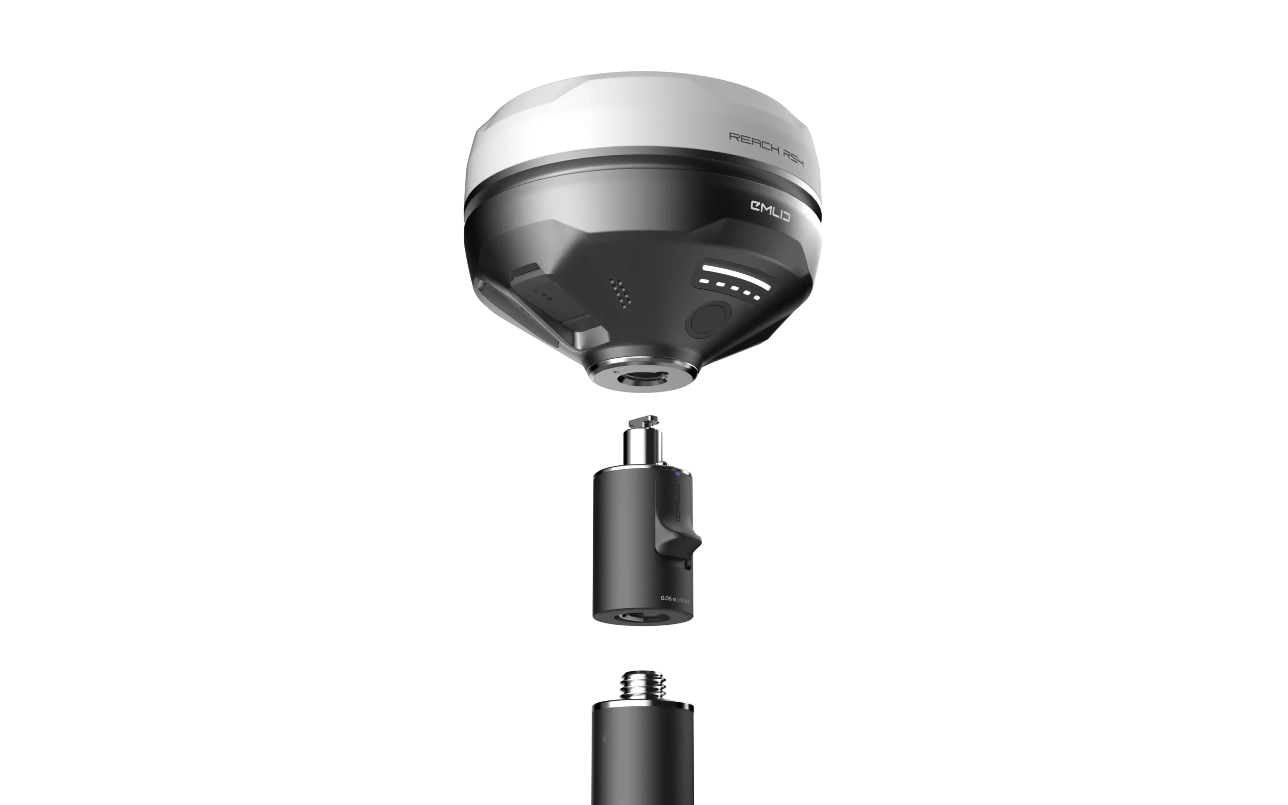 L’embout de fixation rapide Emlid est comptatible avec toutes les cannes topographiques du marché (avec filetage 5/8″)